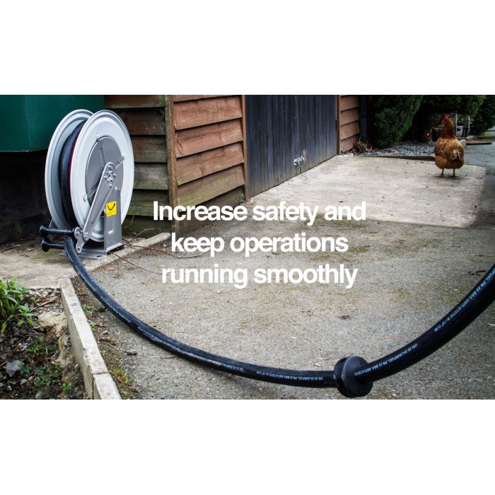- Ease of use encourages extra safety and care for your hose - Pull the hose out and a latch keeps it in place, a short tug releases the latch and you feed the hose back on the reel. This encourages users to always store hose correctly dramatically reduce hose wear and damage.